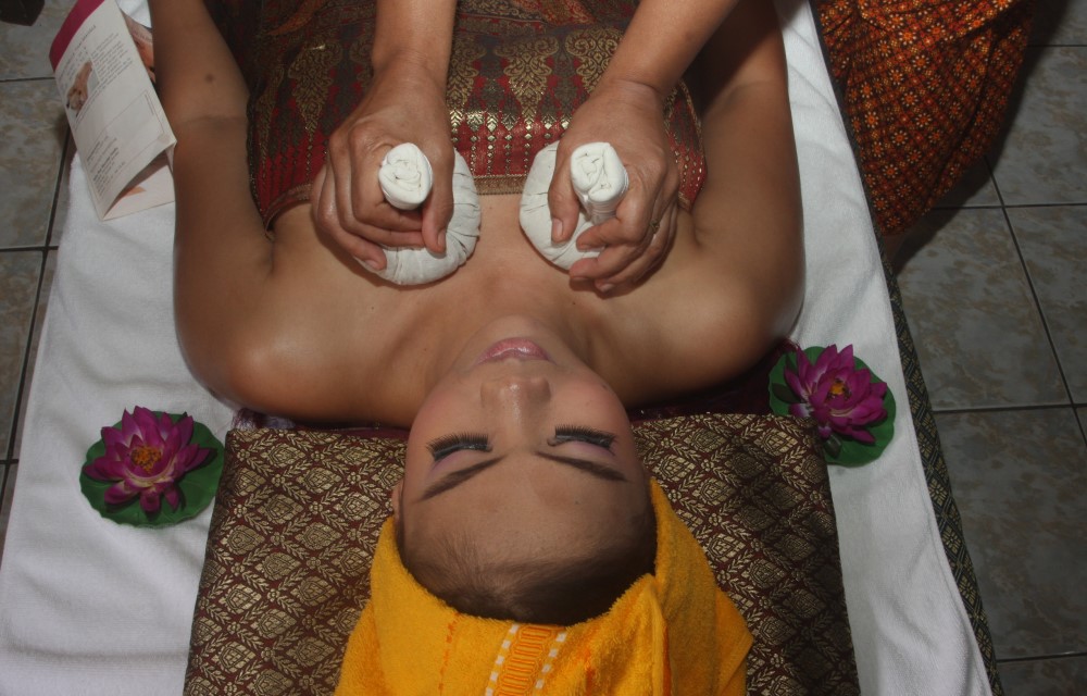 Bei dieser Massage wird ein heißer Kräuterball eingesetzt, mit dem der Körper massiert wird. Das wirkt entgiftend, löst gleichzeitig Verspannungen, strafft die Haut und aktiviert die Produktion neuer Hautzellen.
